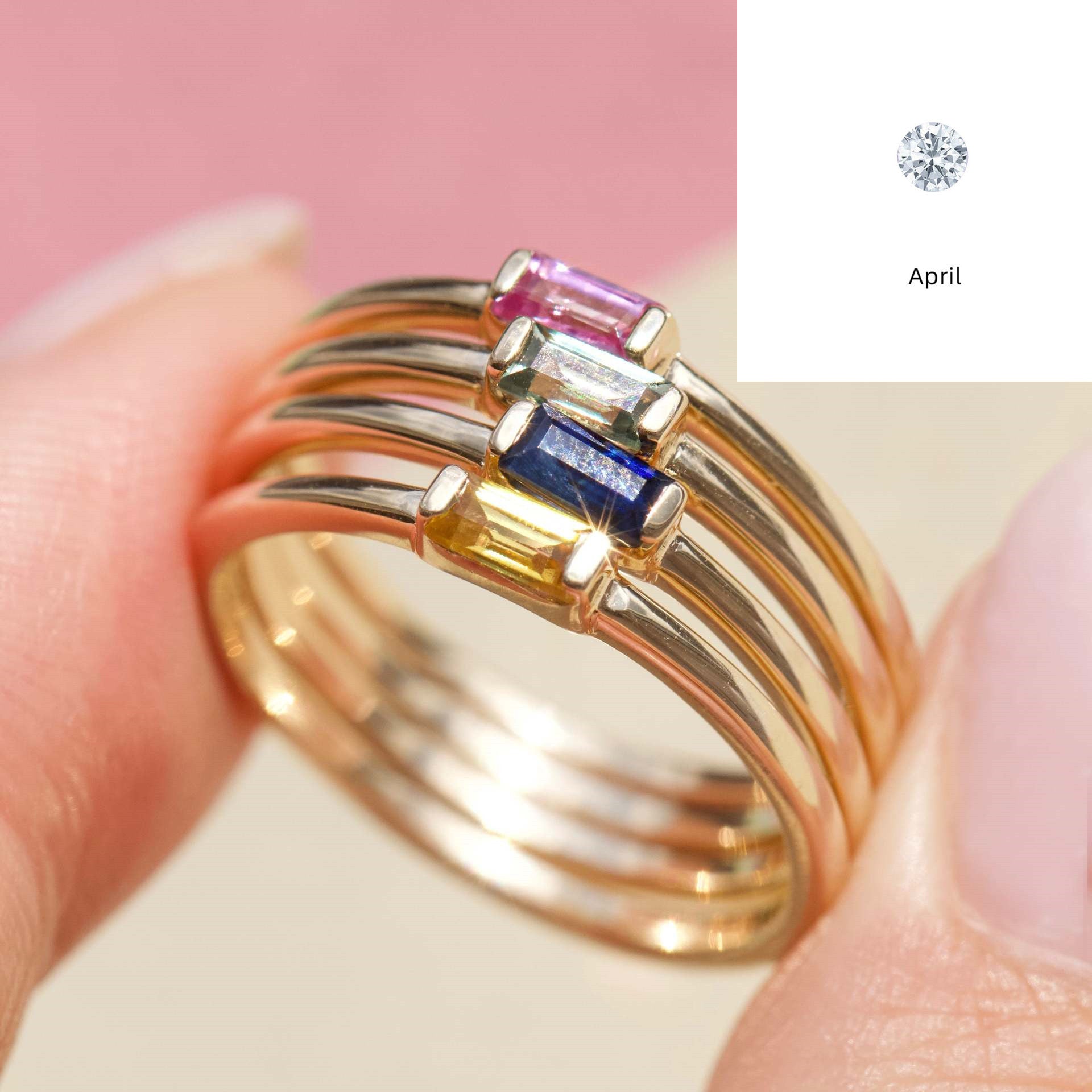 Bague en Diamant Carrée en Pierre de Naissance 12yue