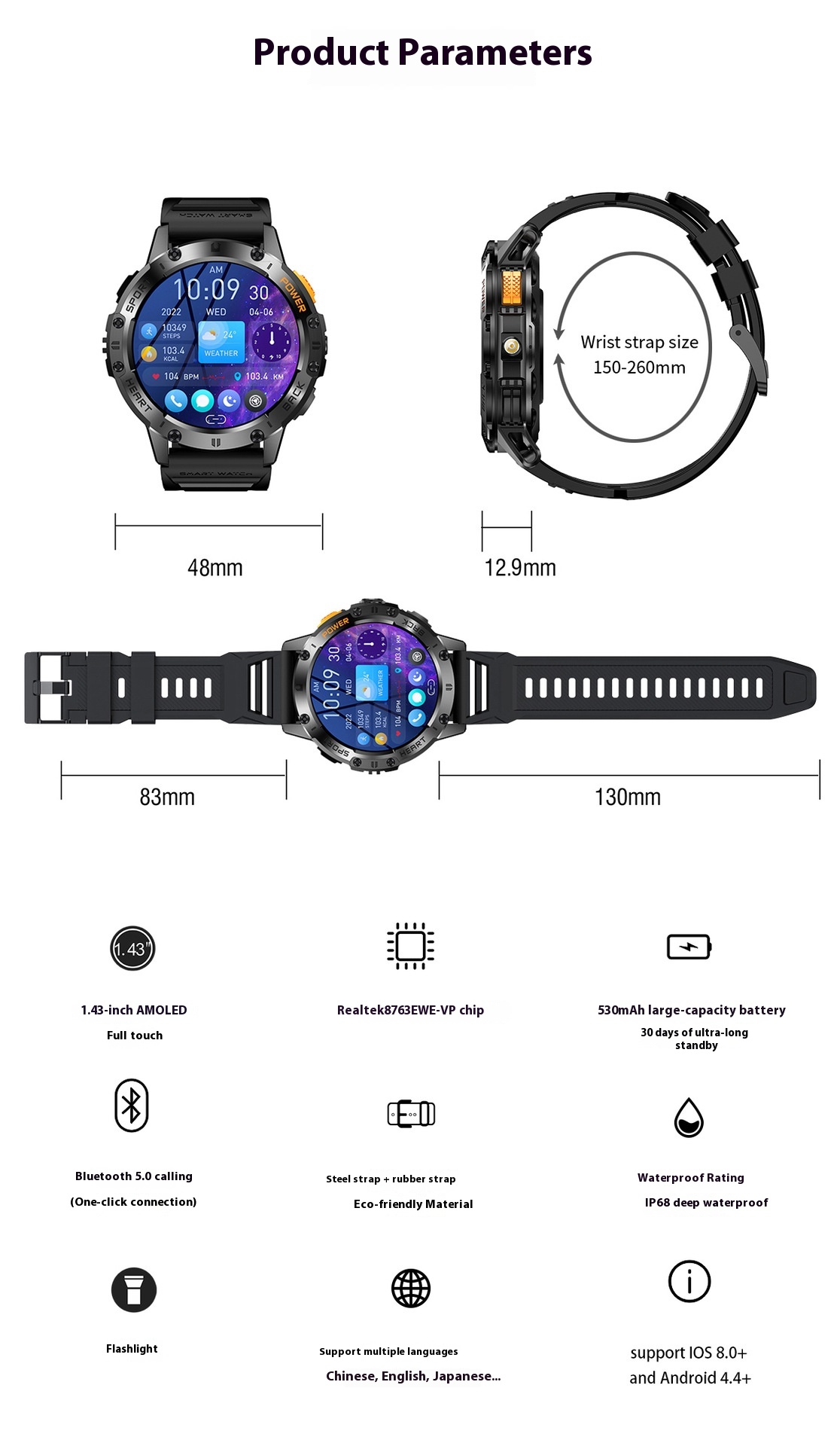 Découvrez la montre multifonctionnelle homme avec un écran rond, conçue pour surveiller votre santé au quotidien. Alliant élégance et technologie, cette montre est l’outil idéal pour rester en forme et connecté.