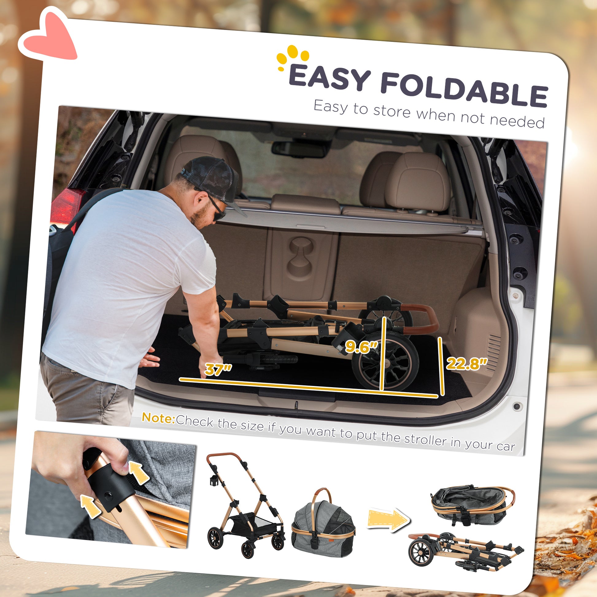 Poussette 3 en 1 pour Chiens avec Cabine Détachable - Poussette Légère Pliable pour Petits Chiens, Grise